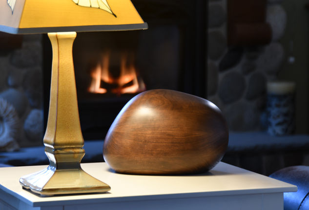 This urn is built from solid cherry wood, made to resemble a river stone, reflecting one's love for nature as a final resting place.